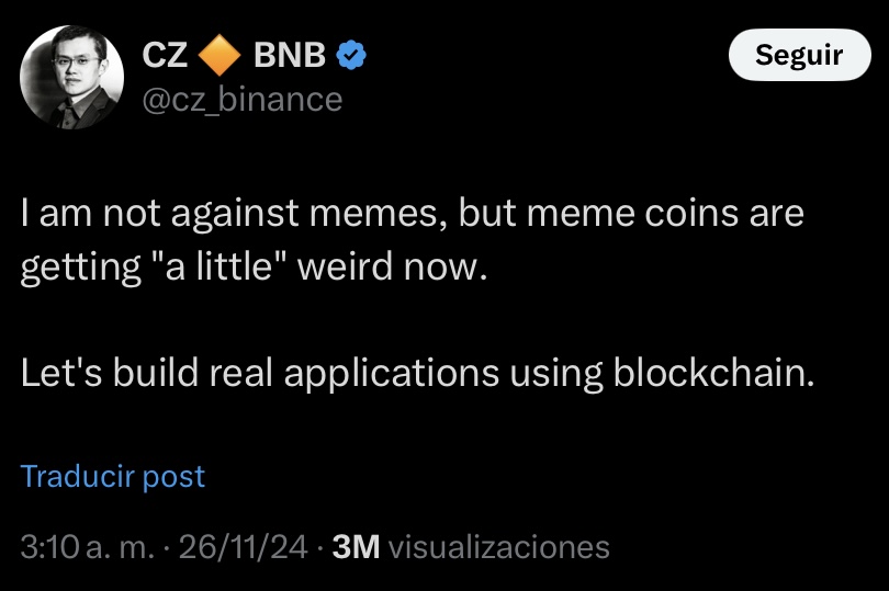 CZ clarified his stance, stating that he is not opposed to memecoins but encourages the community to concentrate on developing practical blockchain applications. He noted that he does not wish to end the current memecoin excitement but rather to motivate more developers to create projects with genuine utility.