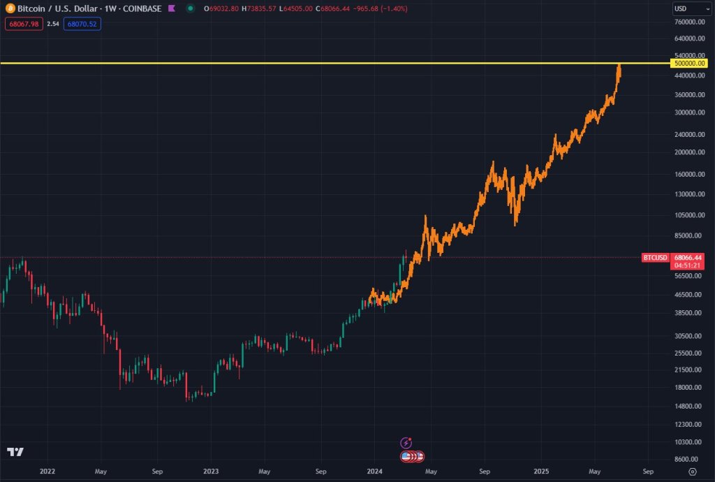 In a post on X, one crypto analyst thinks Bitcoin will reach $500,000 by mid-2025. However, even as prices trend higher, the rally won’t be smooth sailing, expecting some “scary” dips.