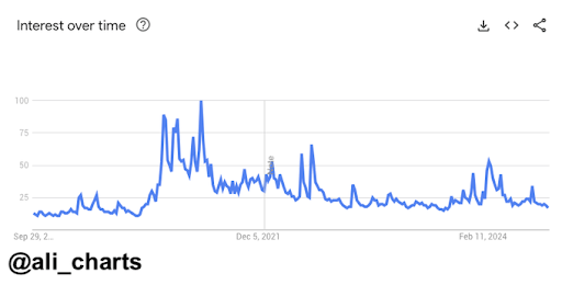 Recent data shows a significant decline in Google searches for Bitcoin, suggesting diminished interest from online users in this major cryptocurrency. Despite this trend, crypto analyst Ali Martinez believes it could be a positive sign for Bitcoin’s value.