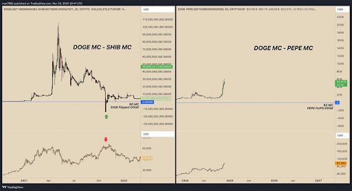 Max cautioned that if Pepe significantly outperforms Dogecoin, it might indicate that the bull market is close to ending, suggesting that investors should consider exiting to prevent losses. Nonetheless, he believes that both meme coins will likely rise together until that point, allowing investors to capitalize on potential gains from either Dogecoin or Pepe during this bull market. Max emphasized the importance of closely tracking Pepe’s performance compared to Dogecoin as the bull market progresses.