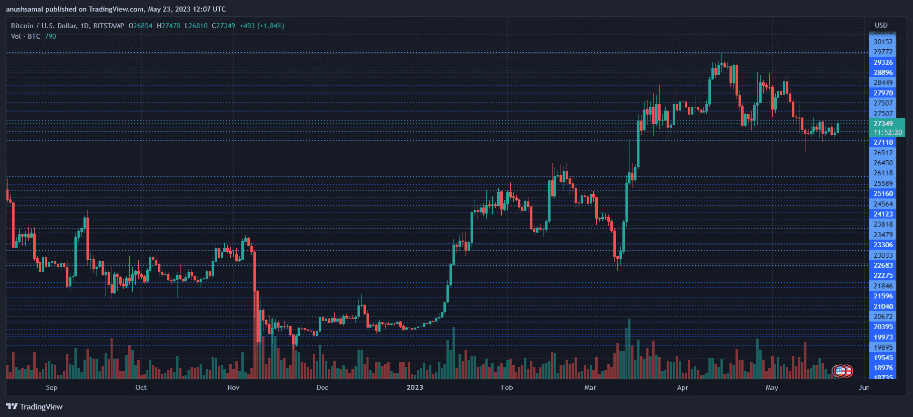 Bitcoin was priced at $27,300 on the one-day chart | Source: BTCUSD on TradingView