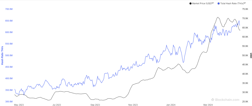 As analyst James Van Straten pointed out in a post on X, the Bitcoin mining hashrate has always gone down following Halving events.