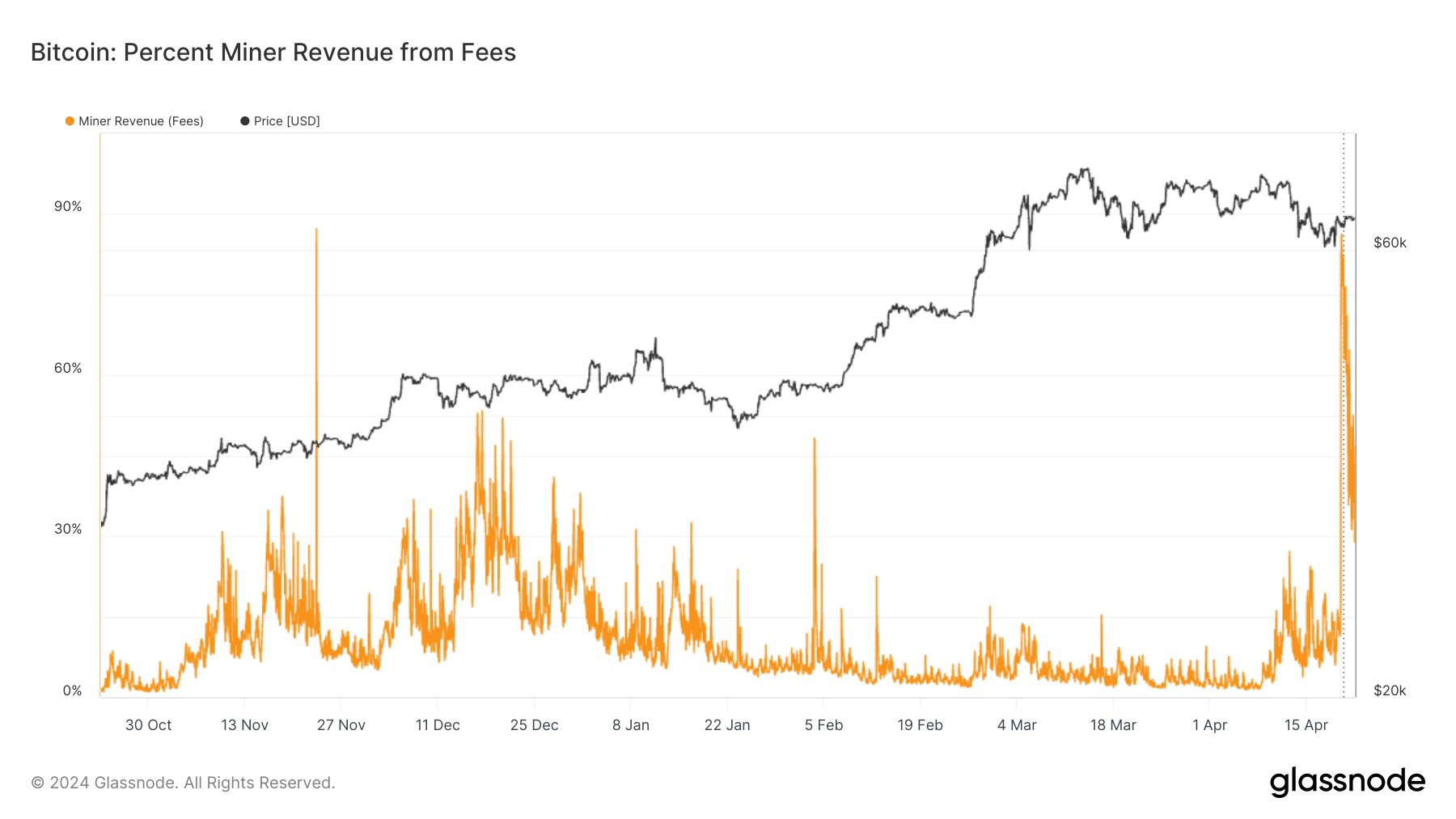 While the hype has cooled down a bit, as fees now account for 30% of the total miner revenue instead of more than 75% as it was earlier, the revenue percentage they are contributing to is still quite high compared to the past, and this may be the reason why miners are sticking around post-halving.