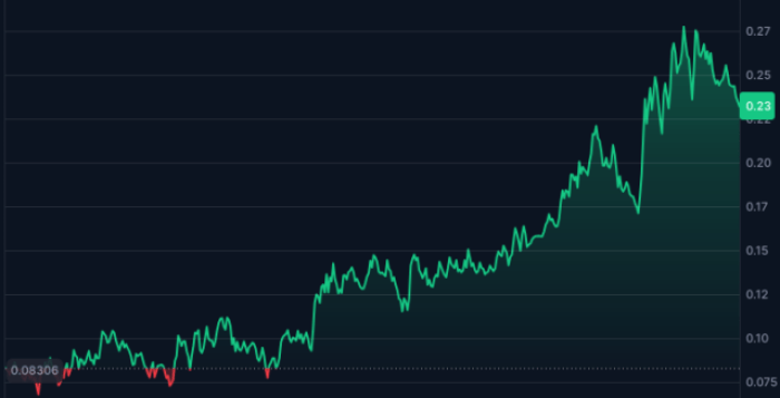 In the last month, this token has skyrocketed by 167%, currently trading at $0.23 (down from a peak of $0.27 yesterday).