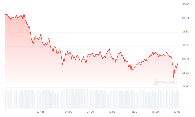 Bitcoin is currently trying to stay afloat amid geopolitical tensions that have triggered a sharp decline in the flagship crypto’s price. At the time of writing, Bitcoin was experiencing a significant drop of nearly 15%, plummeting to a low of $60,660, its lowest level in almost a month.