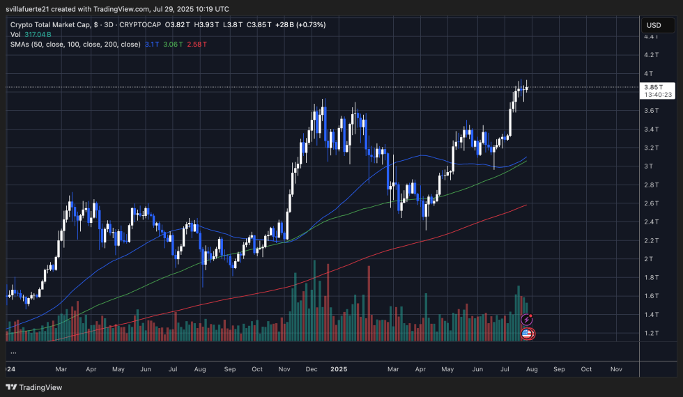 Crypto Total Market Cap Nears $4T | Source: Total Chart On X