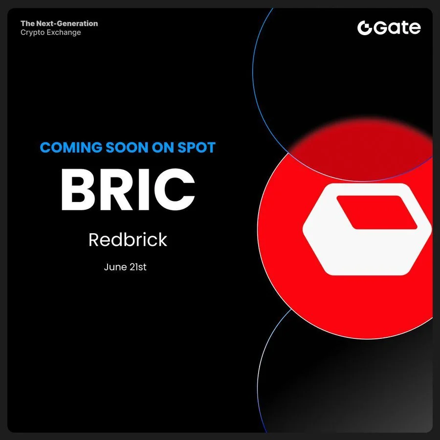 Redbrick Token $BRIC is set to be listed on Gate.io with the trading pair BRIC /USDT on June 21st, 2025, at 10:00 (UTC).