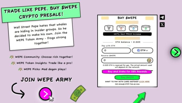 Wall Street Pepe (WEPE) heeft zich razendsnel ontwikkeld als een belangrijke meme coin voor 2025. Dit is mogelijk gemaakt door de indrukwekkende $45 miljoen die tijdens de presale is opgehaald.