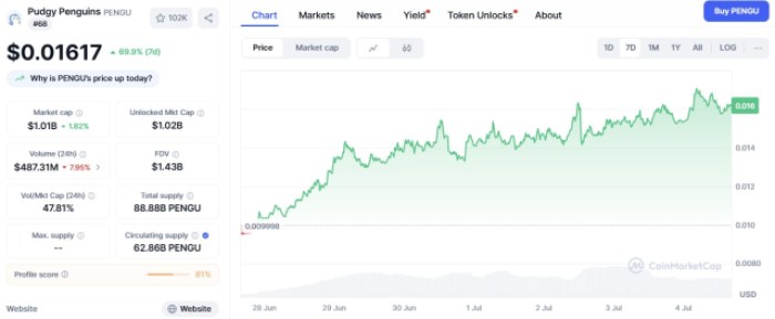 The Solana meme coin market is thriving, with tokens like $USELESS and $PENGU riding the wave of community excitement and achieving remarkable growth almost instantly.