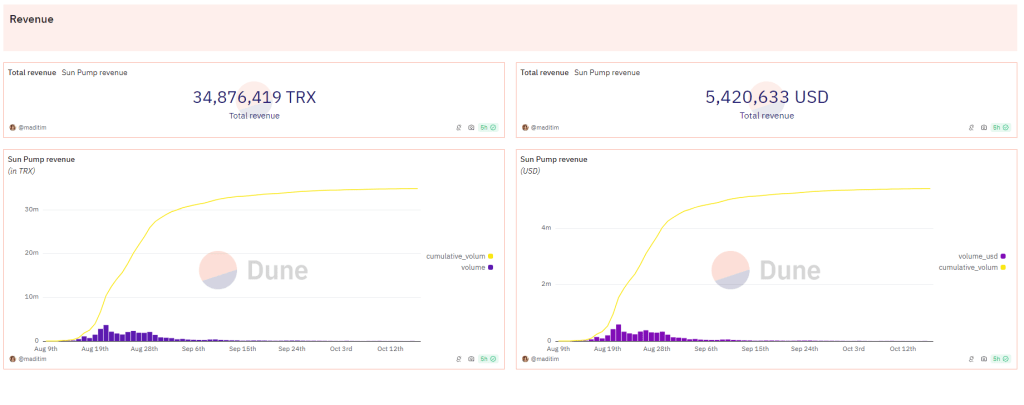Additionally, SunPump has contributed over $5.4 million in revenue for Tron validators, with peak revenues on August 21, when it generated more than $588,000 from transaction charges.